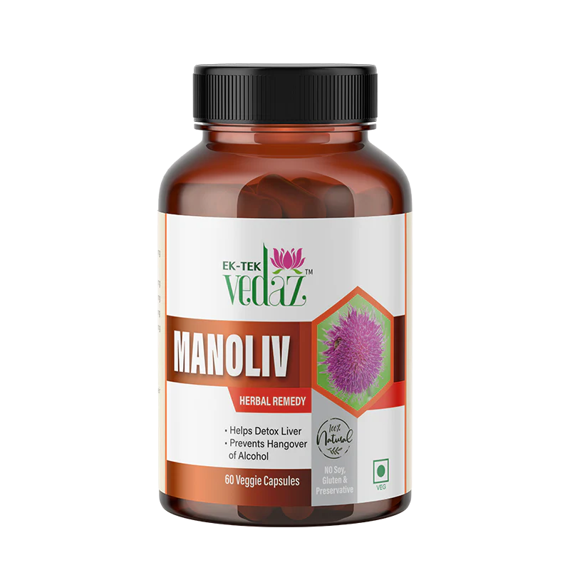 EK-TEK Vedaz Manoliv Capsules are a powerful Ayurvedic herbal supplement designed to support liver detoxification and overall liver health. Formulated with natural herbal extracts, Manoliv helps cleanse the liver, improve metabolic function, and reduce alcohol-related liver stress. Moreover, this vegetarian and preservative-free formula makes it ideal for safe, daily liver care and long-term wellness support.