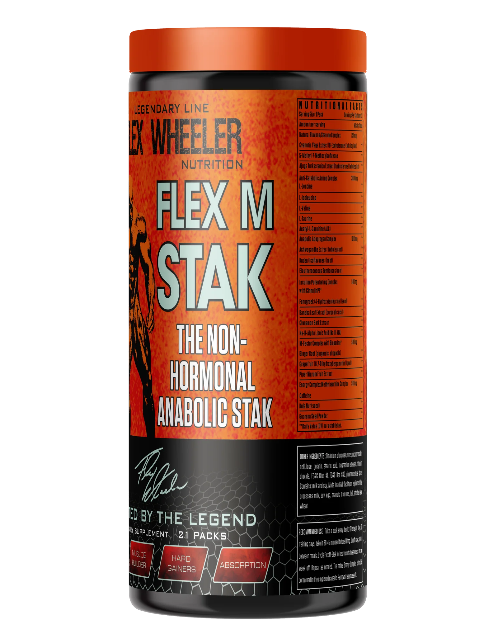 Flex Wheeler Nutrition FLEX M STAK is a premium non-hormonal anabolic supplement, scientifically designed to support muscle growth, strength, and performance. Made in the USA and officially imported by SSNC, this advanced anabolic stack helps hard gainers build lean muscle, enhance training intensity, and improve nutrient absorption. Ideal for athletes looking for a safe, non-hormonal muscle-building edge.