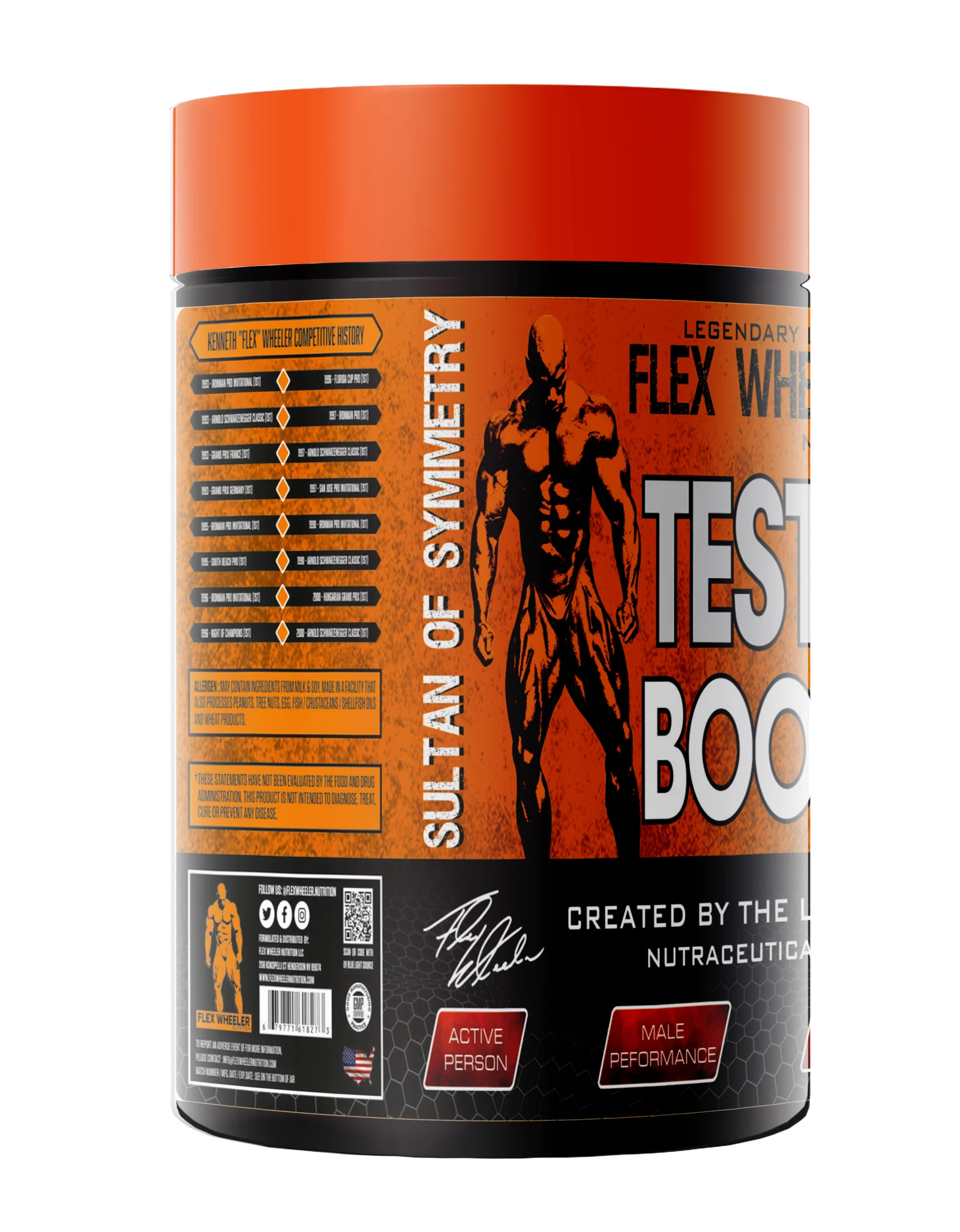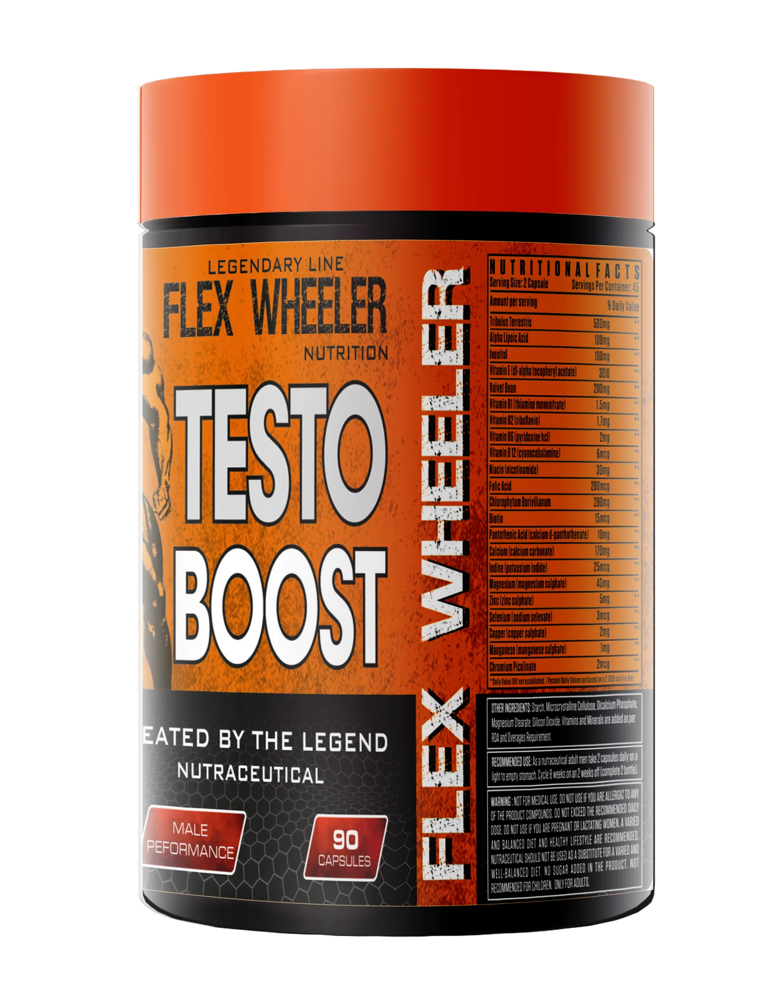 Boost your male performance and vitality with Flex Wheeler Testo Boost, a premium testosterone support supplement crafted for active men. Each bottle contains 90 potent capsules (45 servings) designed to naturally support optimal testosterone levels, enhance energy, and promote overall well-being. Made in the USA and officially imported by SSNC, Testo Boost combines science-backed ingredients with the expertise of Flex Wheeler Nutrition to help you unlock your full potential.