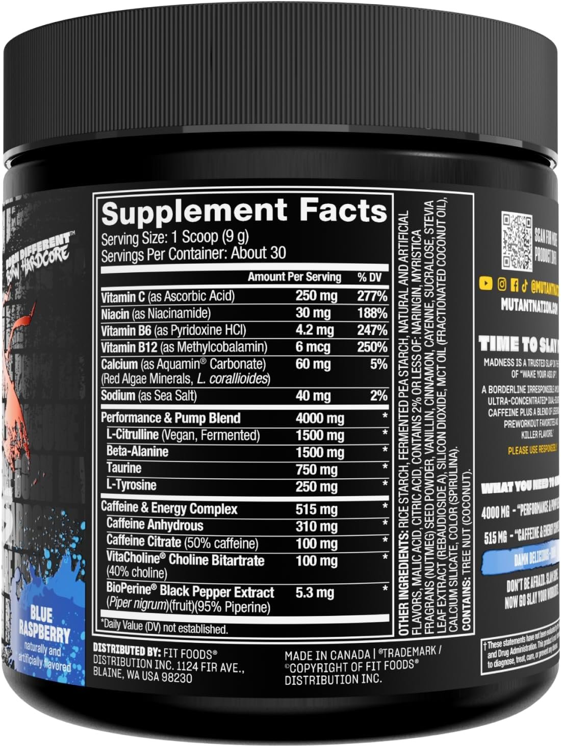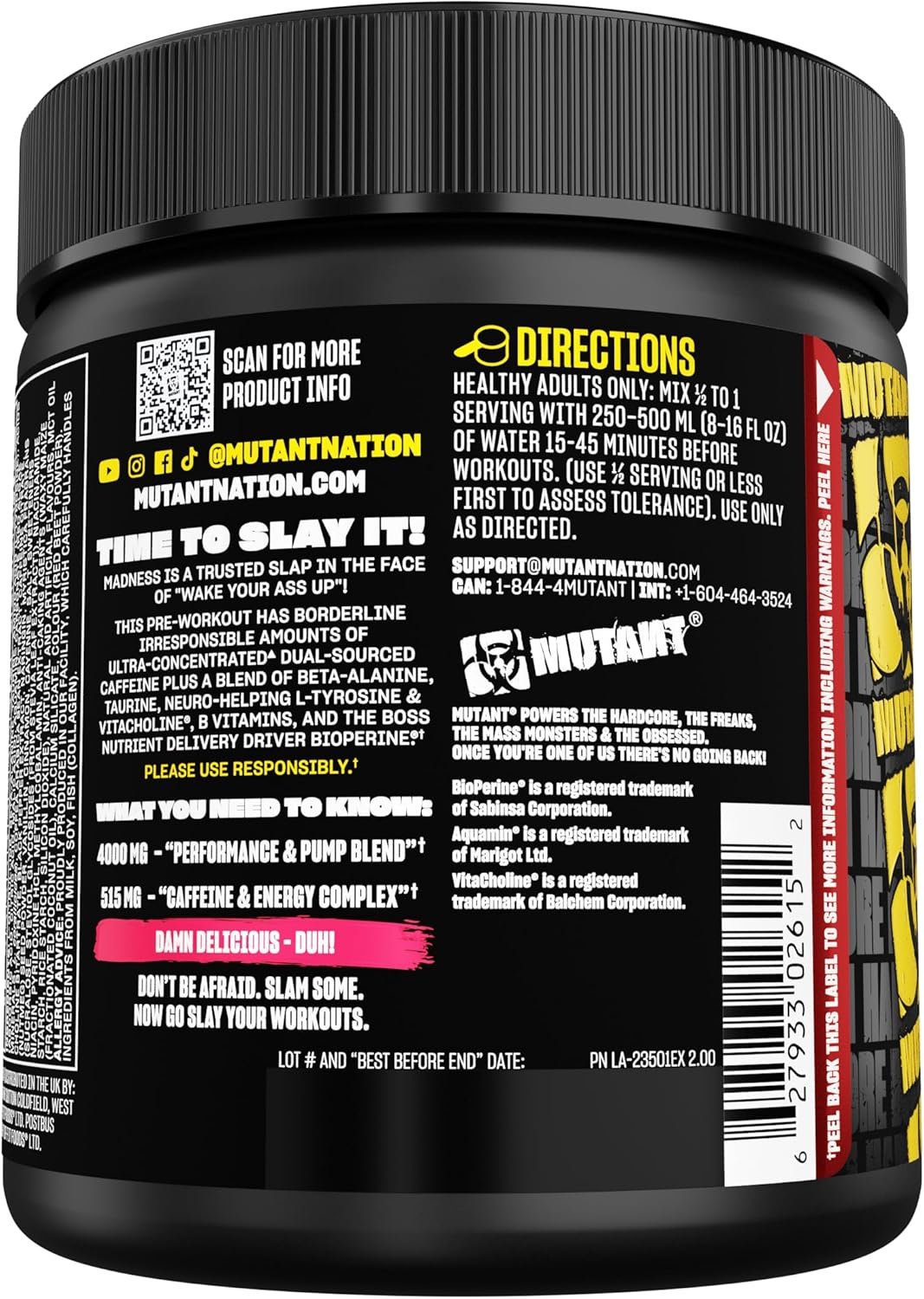 It is a pre-workout formula that delivers results, helping you maximize your workouts and achieve your fitness goals. Whether you’re looking to build muscle, improve your performance, or transform your body, MUTANT Madness is the perfect companion. Take your workouts to the next level with this potent pre-workout powder and experience the difference it can make in your fitness journey.