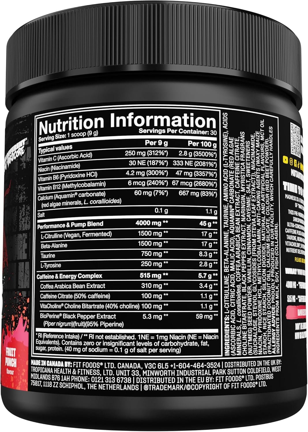 Fuel your high-intensity workouts with MUTANT Madness, the original Mutant pre-workout powder. This powerful supplement is designed to help you push through your limits and achieve your fitness goals. With 30 servings per container, you’ll have plenty of fuel to power your workouts. Each serving contains 225g (.83 lb) of powder, ensuring that you get the perfect dose of energy and focus every time. MUTANT Madness is perfect for bodybuilders, athletes, and anyone looking to enhance their fitness performance.
