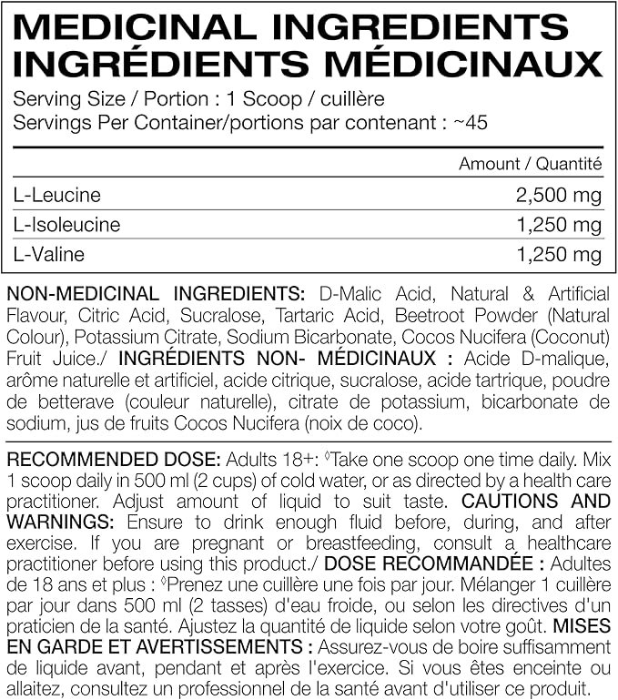 Muscle Recovery & Growth: Provides 5g BCAAs (L-Leucine, L-Isoleucine, L-Valine) per serving to support muscle protein synthesis and reduce muscle breakdown.