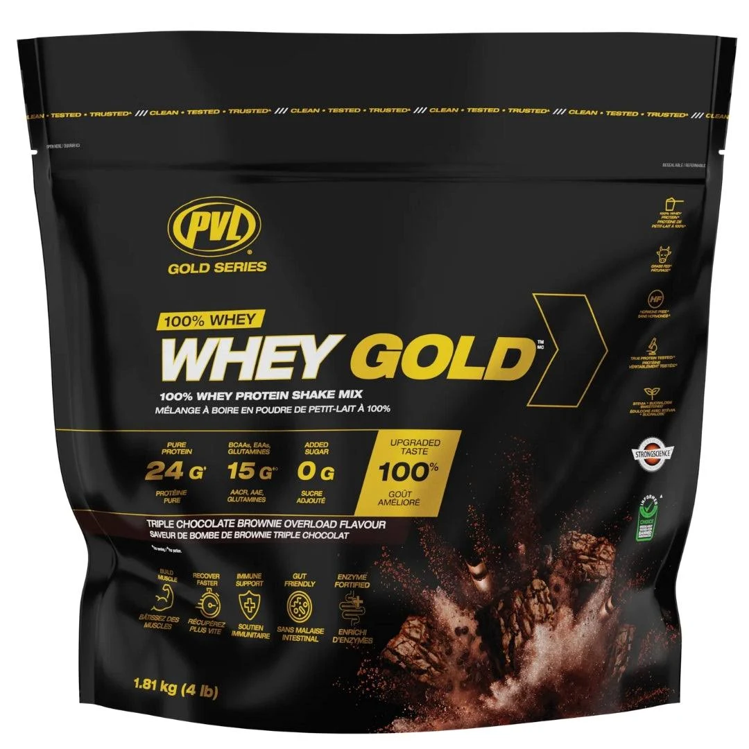 Fuel your fitness goals with Pure Vita Labs (PVL) Whey Gold, a premium Canadian-made protein designed for superior muscle recovery and strength. Each serving provides fast-digesting whey protein for lean muscle growth and performance enhancement. Enjoy rich, smooth flavours — Triple Chocolate Brownie Overload and Vanilla Soft Serve Supreme. Perfect for athletes and fitness lovers seeking clean, effective, and great-tasting whey protein.